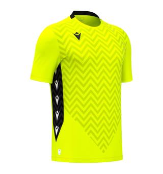 Spillerdrakt til dame og herre laget utelukkende i Eco-Fabric, hentet fra 100% resirkulert PET. Den strikkede V-halsen har stilig påsydd stripe i kontrastfarge. Skjorten har en særegen tekstur som er sublimert på ermene og preget på forsiden.